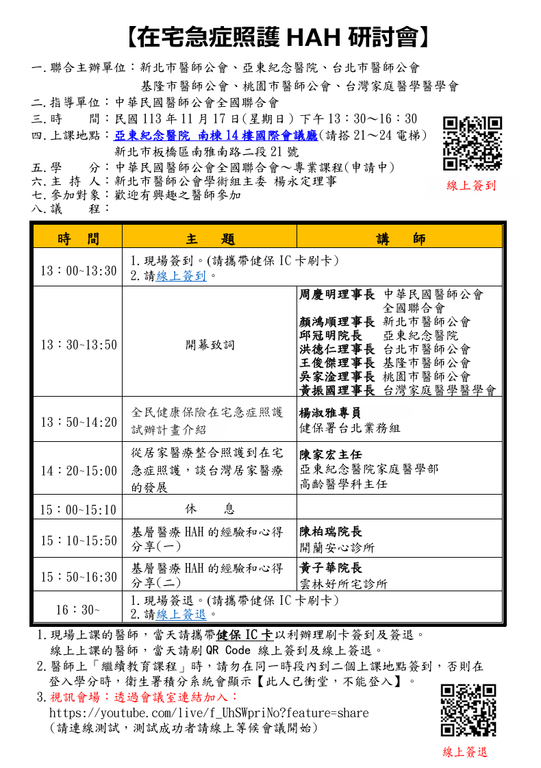 113年11月17日「在宅急症照護HAH研討會」(實體+線上)-全聯會