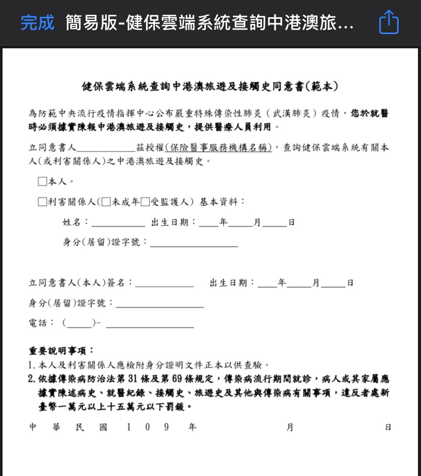 | 簡易版-健保雲端系統查詢中港澳旅遊及接觸史同意書(範本)20200206.pdf | |