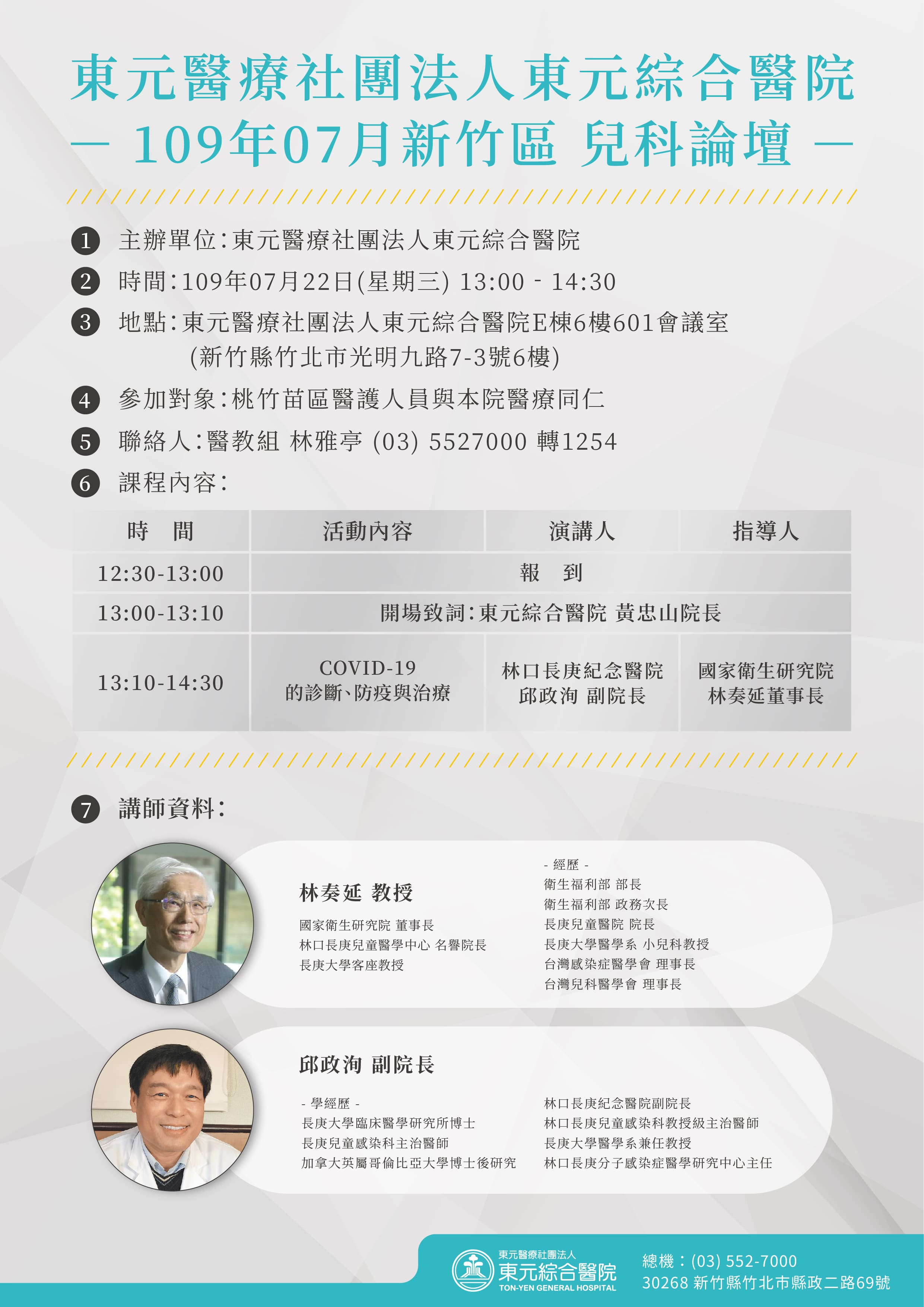 109年7月22日「兒科論壇-COVID-19的診斷、防疫與治療」-東元綜合醫院