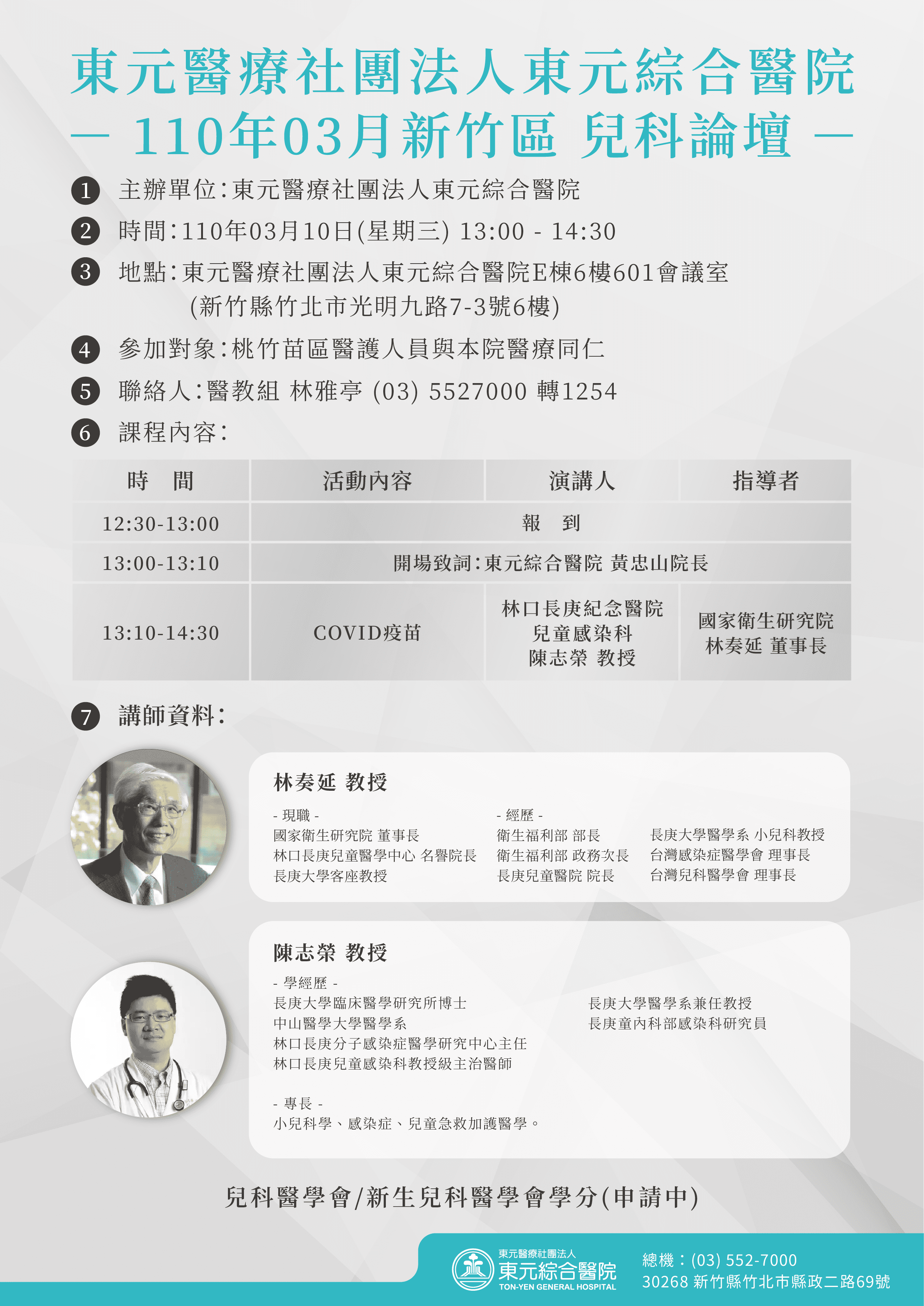 110年3月10日「110年3月新竹區兒科論壇-COVID-19疫苗」-東元綜合醫院
