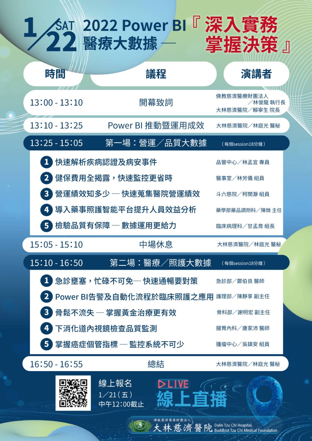 | 111年1月22日「2022 Power BI醫療大數據-『深入實務 掌握決策』發表會」-大林慈濟醫院 | ||||||||||||||