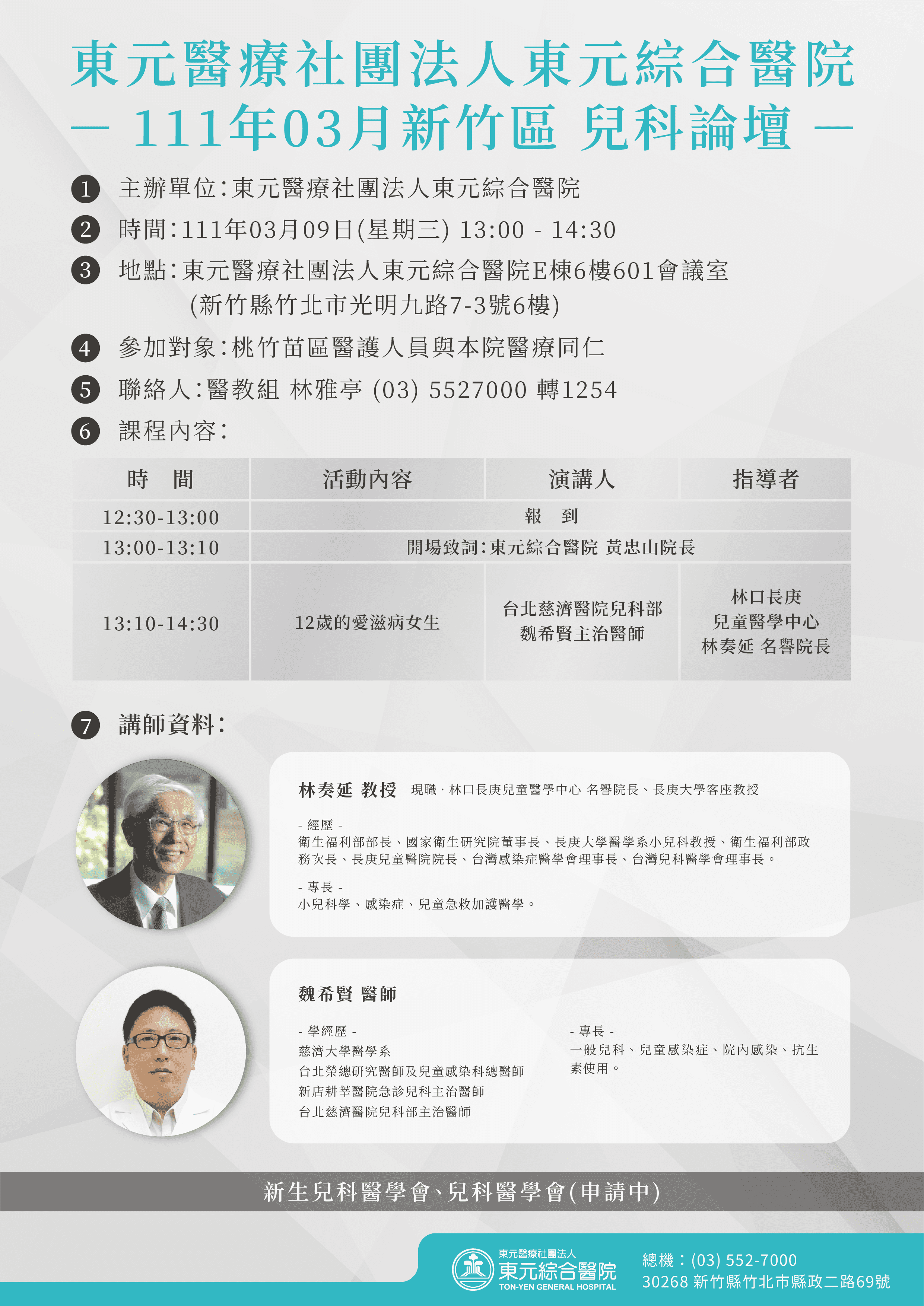 111年3月9日「111年3月新竹區兒科論壇」-東元綜合醫院