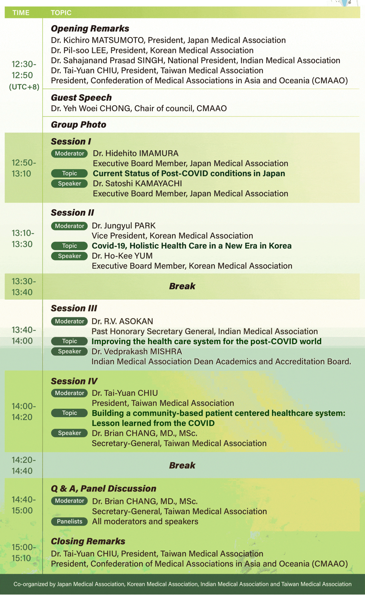 | 111年8月26日「台日韓印新冠肺炎國際研討會:新時代的全人照護(Covid-19 symposium:Holistic Health Care in a new era)」線上直播課程-全聯會 | ||||||||||||||