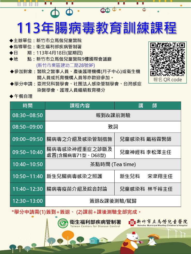 113年4月18日「113年腸病毒教育訓練課程」-新竹市立馬偕兒童醫院 |