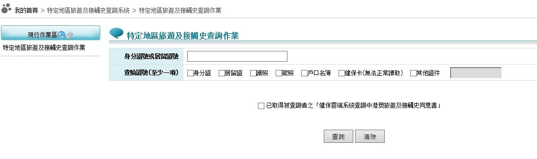 5. 查詢前需先取得被查詢人之書面同意書。名稱:「健保雲端系統查詢中港澳旅遊及接觸史同意書」(若有健保卡就診直接雲端提示則不用填)